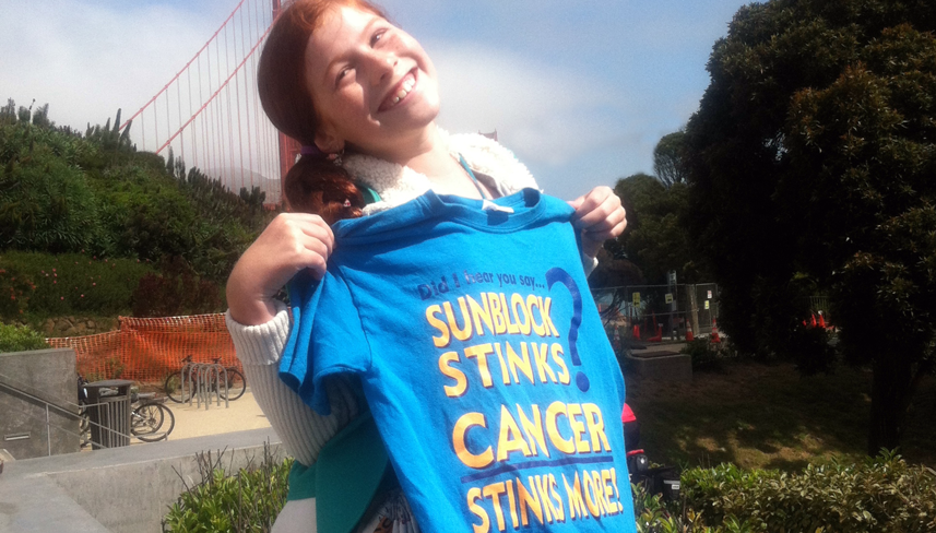 She also helped launch the website www.skincancerstinks.org. It all started with a 10-year-old’s hope to help save lives, and a T-shirt she created that says, “Sunblock Stinks? Cancer Stinks More!” You can buy this T-shirt on her website and help spread her message.