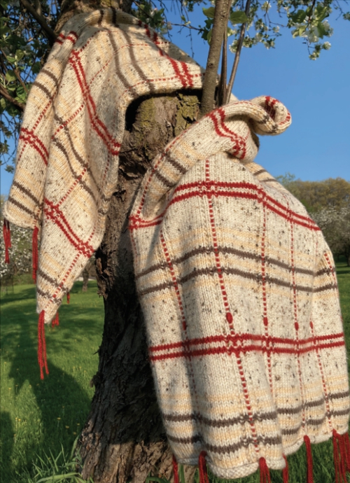 As treatment continued with a lot of time just sitting around, I worked on a different kind of prayer shawl, sort of a knitted throw, a plaid number in brown, rust, gold, and cream. This fun and challenging pattern helped to focus my mind, as a new thing to learn. The routine of knitting gave my hands something to do, and made me feel productive.