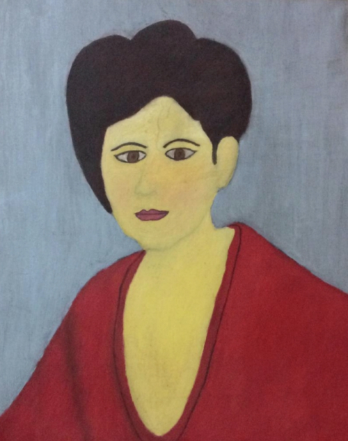 The “Cancer Survivor in Red” was inspired by a breast cancer survivor who was single and had no children. She was very sad after her mastectomy, thinking that no man would want to be in a romantic relationship with a woman without breasts. I tried to change her idea and help her regain her strength.