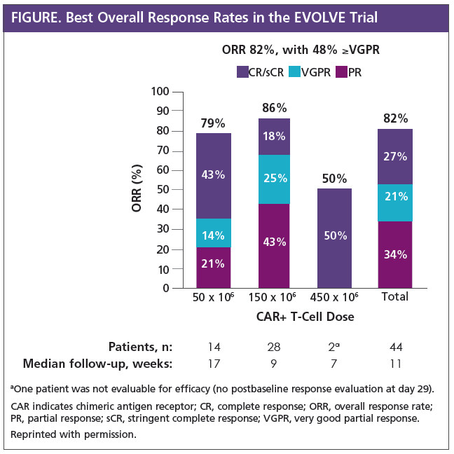 - Mailankody S, Htut M, Lee KP, et al. JCARH125, Anti-BCMA CAR T-cell therapy for relapsed/refractory multiple myeloma: initial proof of concept results from a phase 1/2 multicenter study (EVOLVE). Presented at the 2018 ASH Annual Meeting; December 3, 2018; San Diego, CA. Abstract 957.