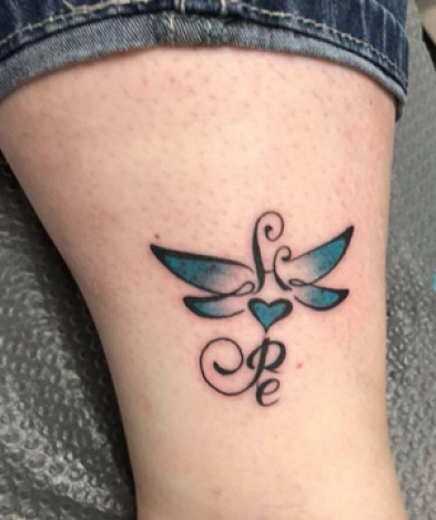 When I was little, I wanted to catch dragonflies and hold them in my hand. When I was diagnosed with cancer and going through treatment, I was given several dragonflies in different forms, including some dragonfly stickers. I decorated my chemo pump with these stickers at each of my treatments. I keep a glass dragonfly given to me on my desk every day. My daughter is an artist, so she designed a tattoo that includes the word hope and a dragonfly, which I had inked for the 5th anniversary of my diagnosis. These remind me of my dad, of love, of hope, and of promise.
